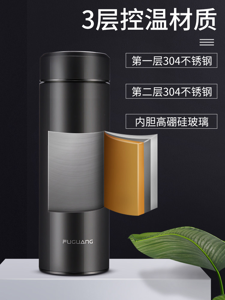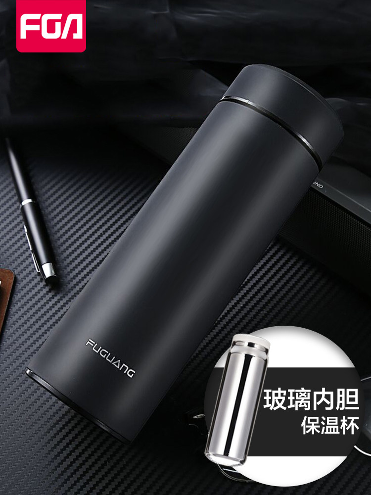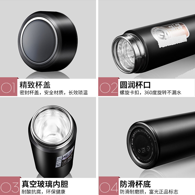 Rich light glass liner insulated cup male and female students portable stainless steel water glasses office large capacity support lettering