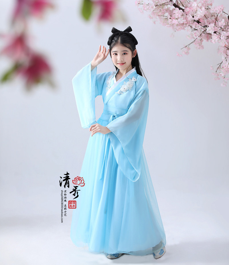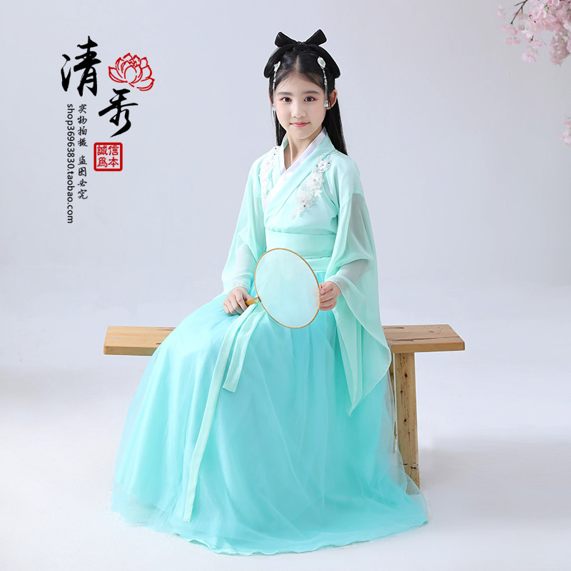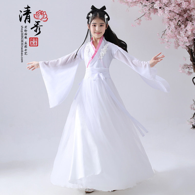 Children's Han clothes girl's ancient dress light yarn fairy girl little girl The female Guzheng Superfairy qi handed out the ancient wind to perform the autumn