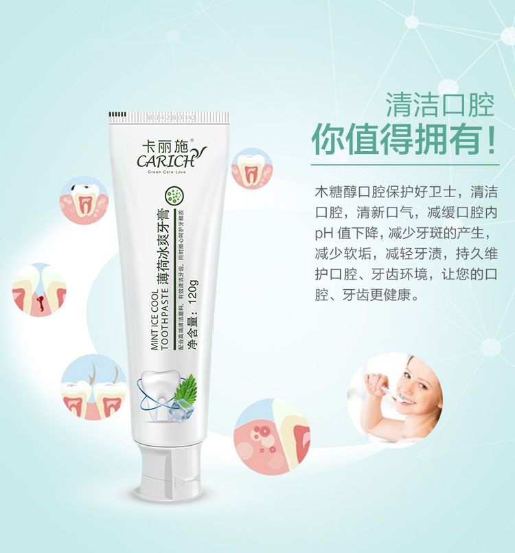 Green leaf Kalishi mint ice cool toothpaste fresh breath removes odor fluoride-free toothpaste cool mint to remove bad breath
