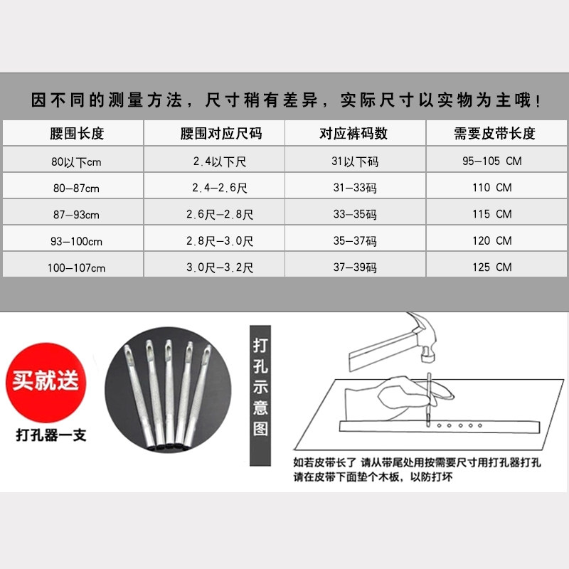 Men's genuine leather pin buckle pure cowhide belt with no head and no head