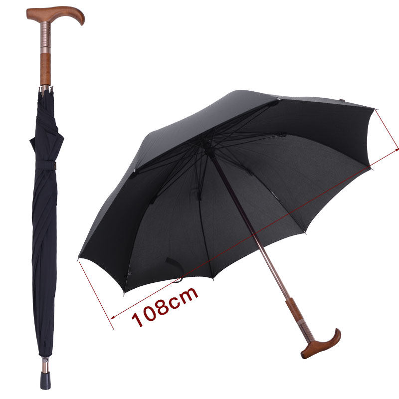 Old man long handle crutch against wind umbrella large black outdoor bar with parachute hand crutch and skid