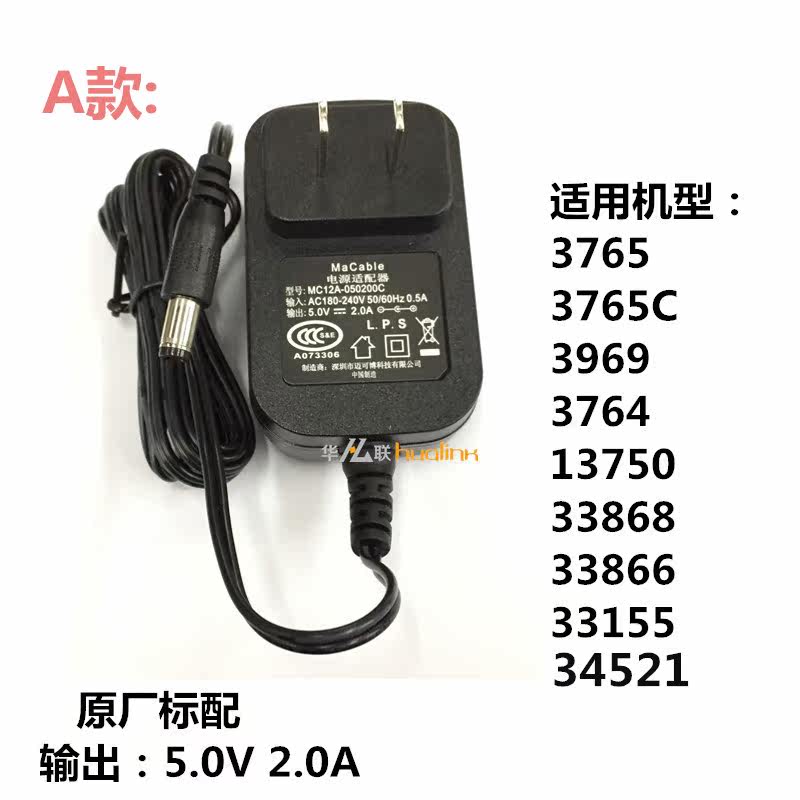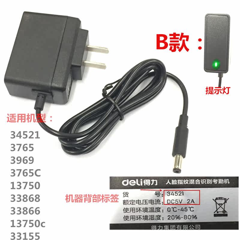 Deli attendance machine power adapter 5 0V2A 3765C 33868 34521 punch machine 5 volt power cord