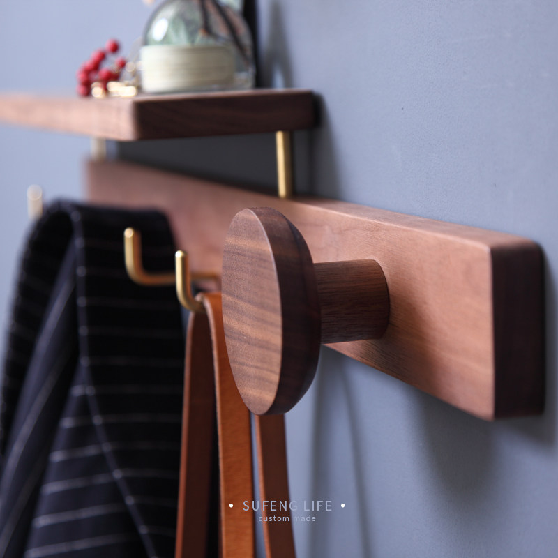Plain adhesive hook door hanging hanger Wall creative porch coat hook bag key adhesive hook rack solid wood