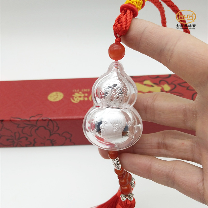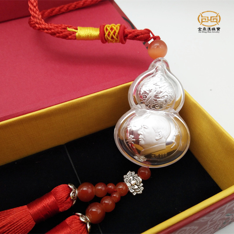 Chairman Mao's car pendant pure silver 999 gourd Mao Zedong's car decoration to ensure access and safety travel commemorative gifts