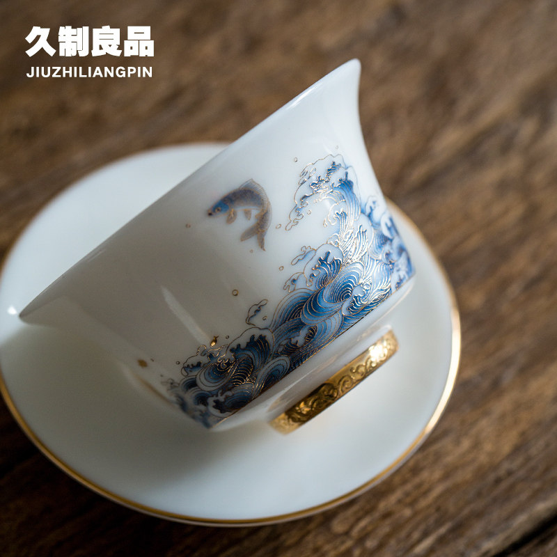 Long-made good three-cai bowl tea cup ceramic tea set handmade Japanese-style tea bowl Dehua white porcelain brewing tea bowl large