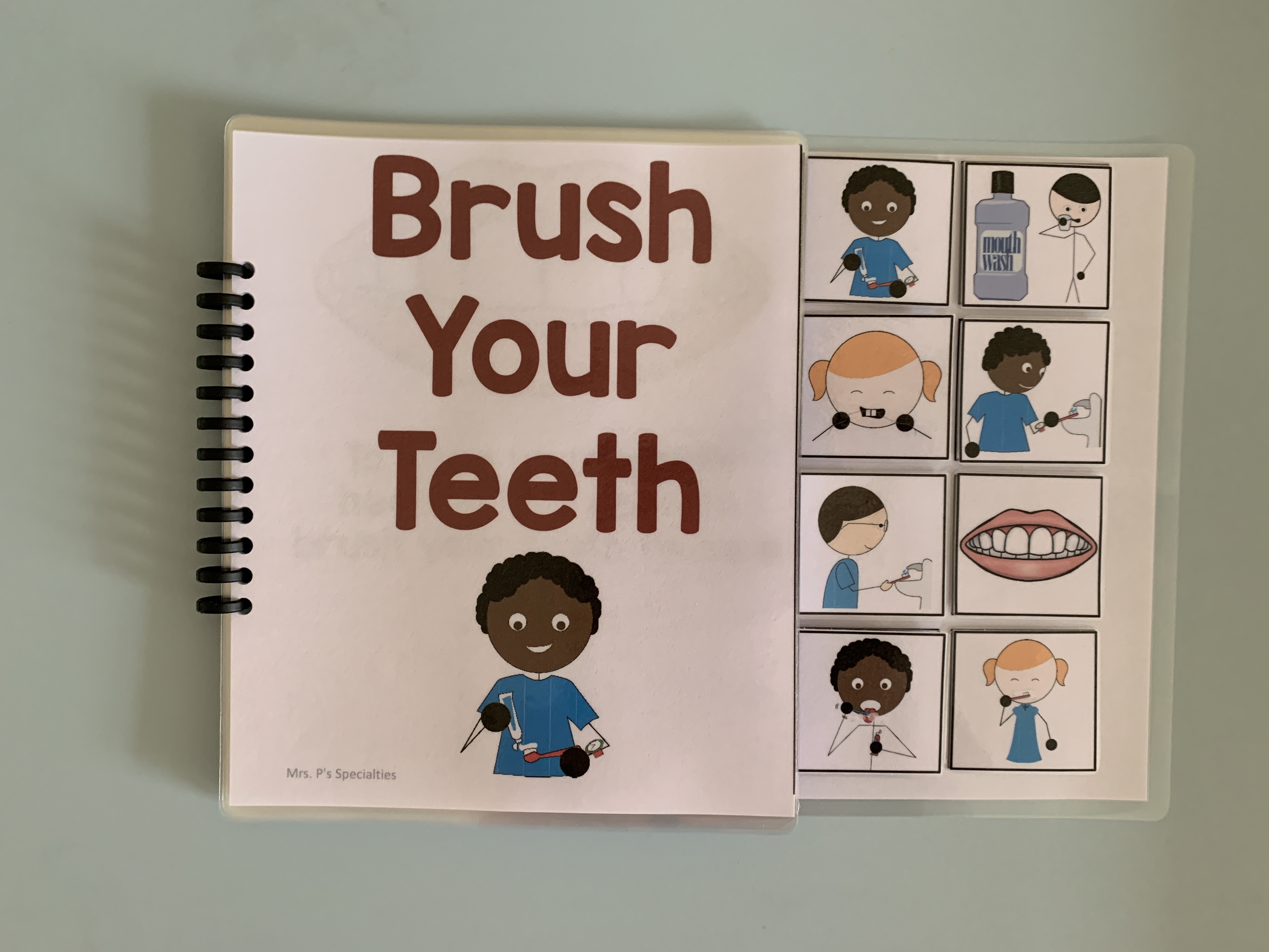 Brush your teeth (finished plastic seal)Wash your face (finished plastic seal) Dress (finished plastic seal)Take care of the body (finished plastic seal)A full set of four upgraded to 160 grams of coated paper plastic seal