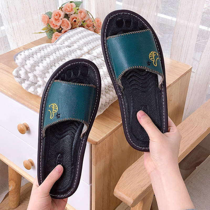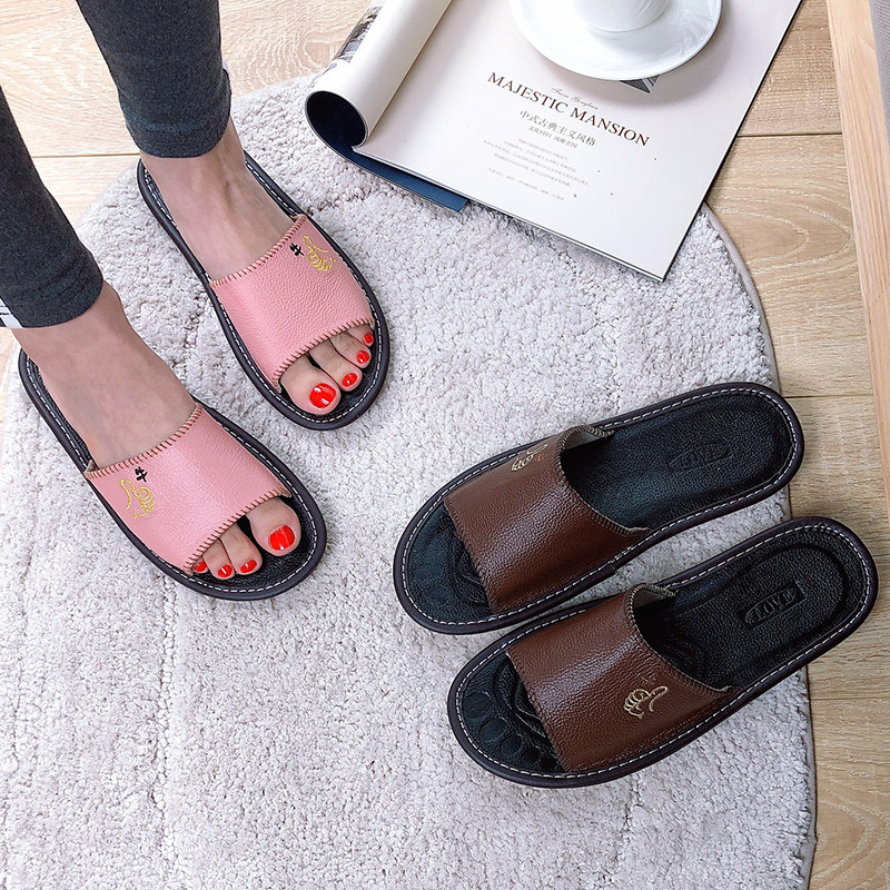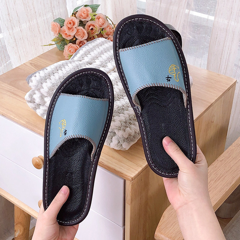 Summer deodorant leather slippers women's home household indoor floor couples non-slip soft bottom summer sandals and slippers men