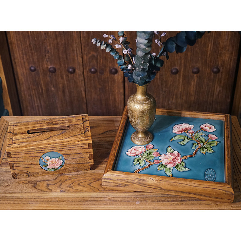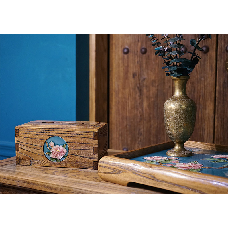 Jia women's ceramic inlaid elm tissue box home creative solid wood napkin sanitary paper box living room decoration ornaments