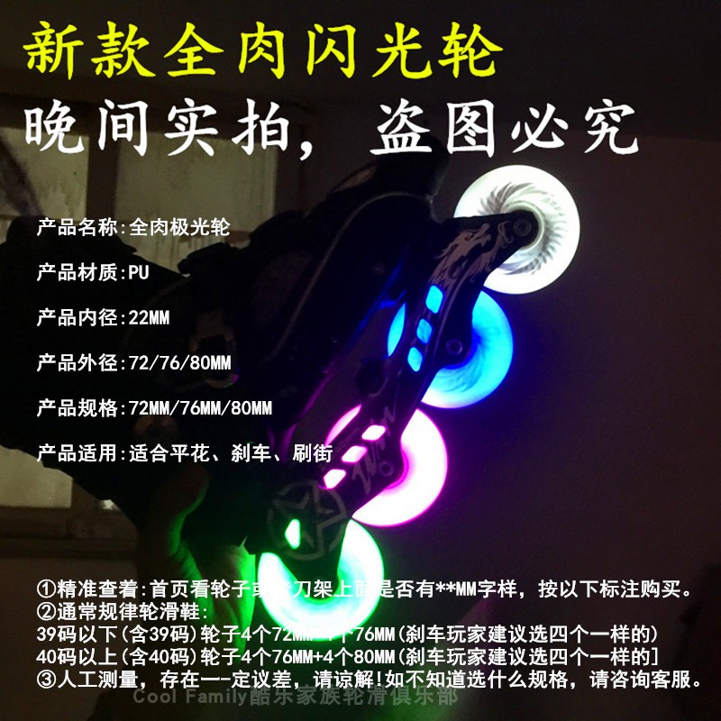 All meat wheel white light 72MM + black gold bearing all meat wheel white light 76MM + black gold bearing all meat wheel white light 80MM + black gold bearing all meat wheel pink 72MM + black gold bearing all meat wheel pink 76MM + black gold bearing whole meat wheel pink 80MM + black gold bearing full meat wheel blue light 72MM + black gold bearing whole meat wheel blue light 76MM + black gold bearing full meat wheel blue light 80MM + black gold bearing whole meat wheel green light 72MM + black gold bearing whole meat wheel green light 76MM + black gold bearing full meat wheel green light 80MM+ Black gold bearing all meat wheel red light 72MM + black gold bearing whole meat wheel red light 76MM + black gold bearing all meat wheel red light 80MM + black gold bearing all meat wheel white light single wheel Specification message all meat wheel pink single wheel Specification message all meat wheel bluish single wheel Specification message All meat wheel green light single wheel Specification message All meat wheel red light single wheel Specification message All meat luminous wheel 8 Single wheel Full meat luminous wheel 8 + black gold bearing * 16
