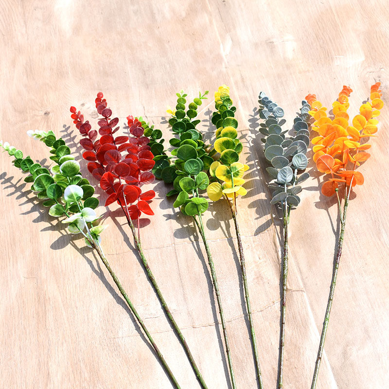 Single eucalyptus leaf simulation green plant plastic flower leaf decoration flower wedding decoration red and green flower arrangement leaves fake leaves