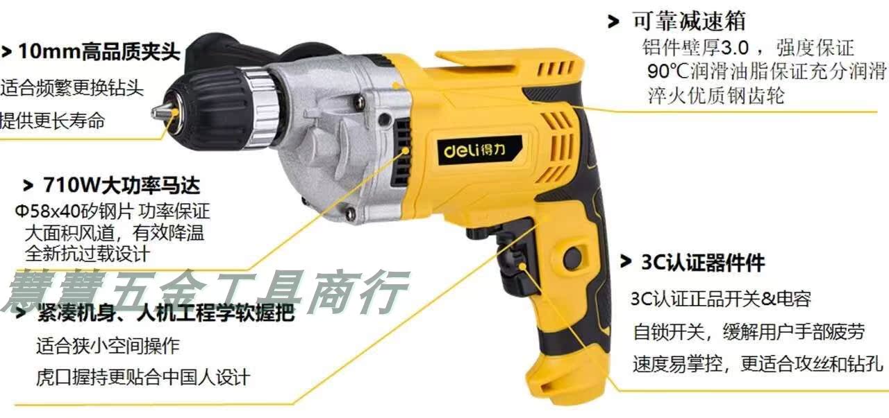 Right-hand tool 220V High power home electric drill multifunction shock hammer drill dual-use electric drill 13mm