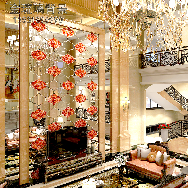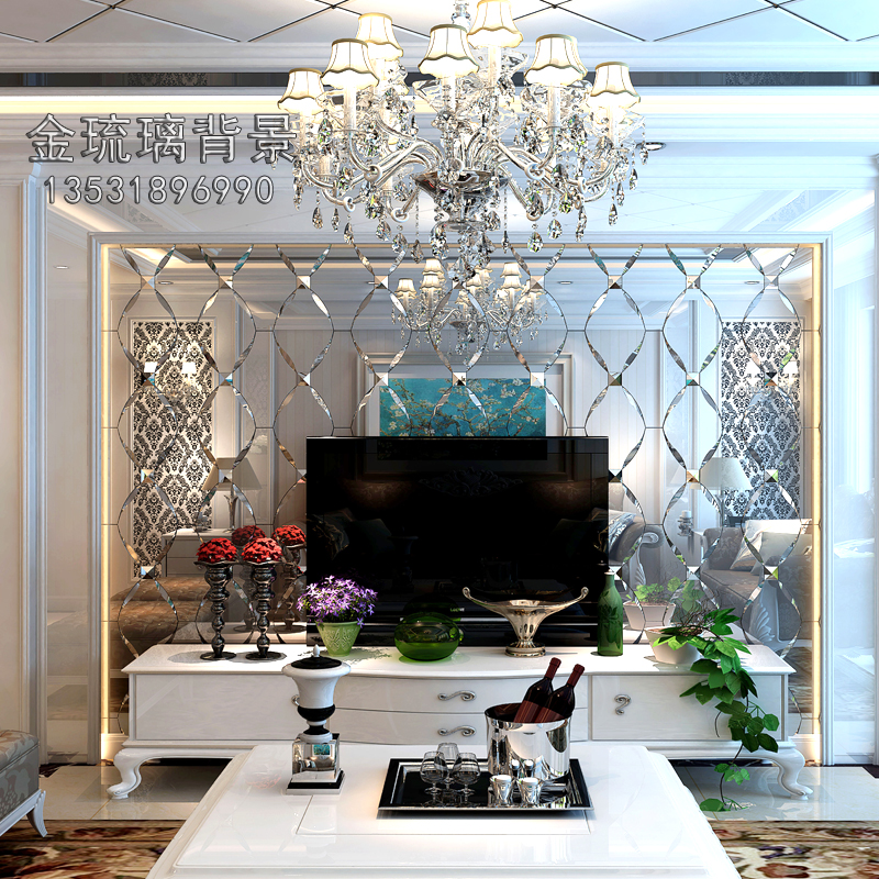 European-style porch art glass living and dining room TV sofa mirror diamond-shaped black tea gray silver mirror film and television background wall