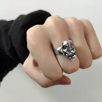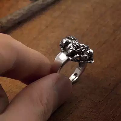 925 sterling silver lucky ring men's retro personality Tide men's single live mouth evil body ring
