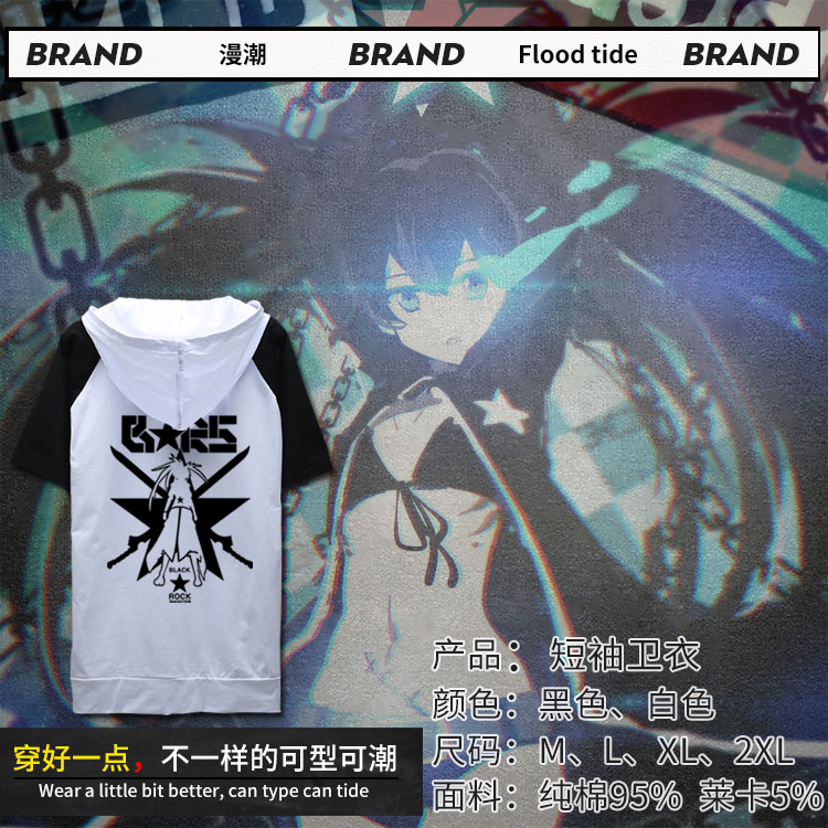 Black rock shooter jacket two-dimensional peripheral clothes white rock shooter concept hooded short-sleeved clothes anime sweater