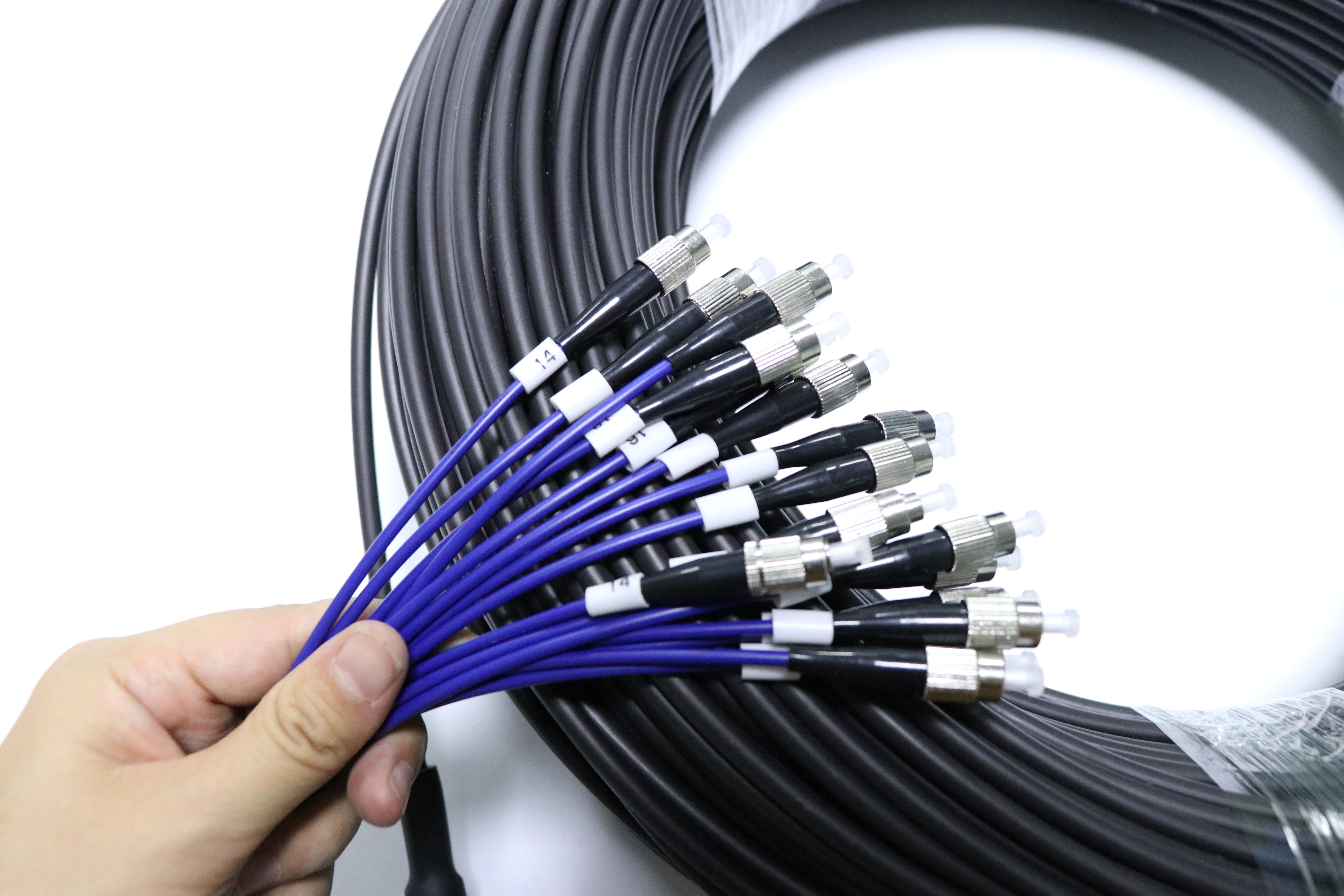 Outdoor single mode fiber optic cable 4 6 8 12 24 core prefabricated connector armored melt-free fiber optic cable custom SC LC FC