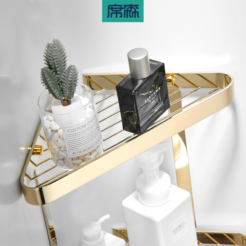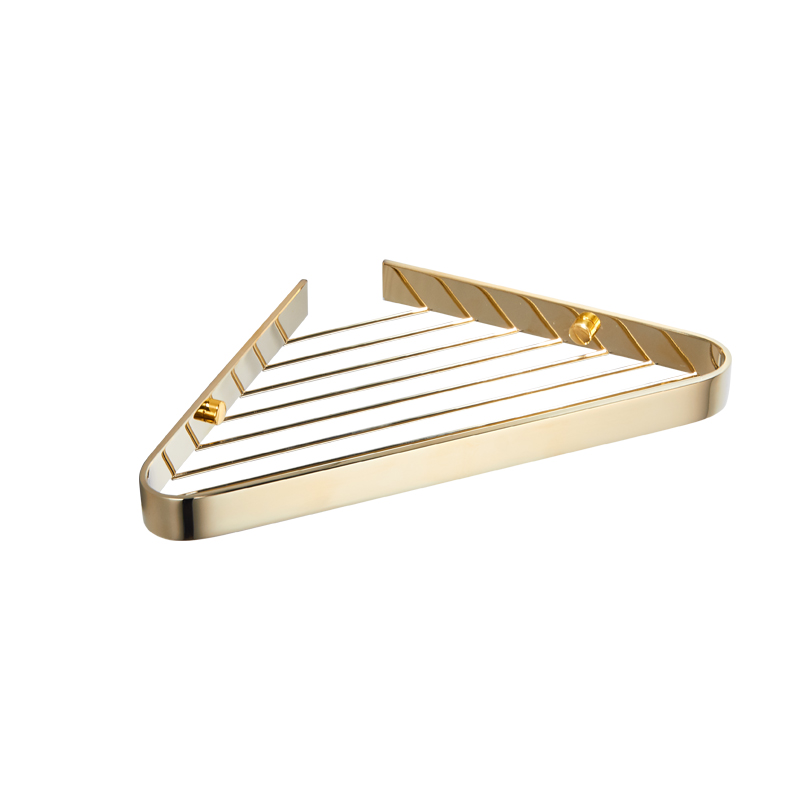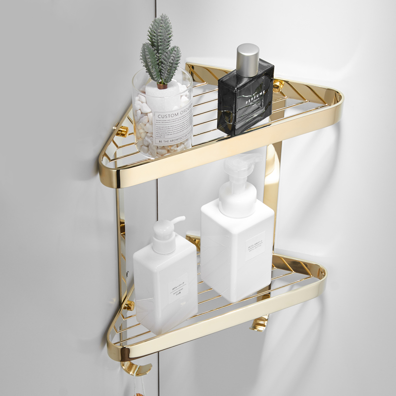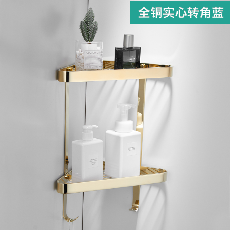 Gold all-copper solid corner frame bathroom rack single-layer shower room bathroom wall-mounted mesh basket high-grade triangular basket
