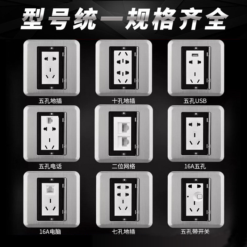 Melan Riland Hidden stainless steel floor plug flat push phone plus computer network network cable Floor floor socket