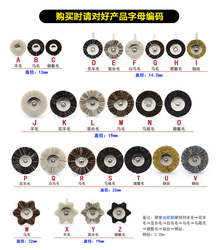 Hexagonal flat brush wool wheel grinding black bristle brush dental jewelry polishing brush horse hair brush copper wire wire brush