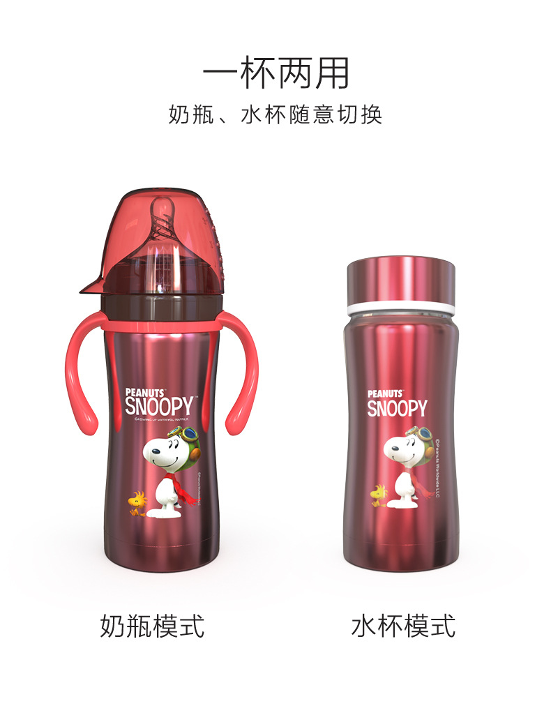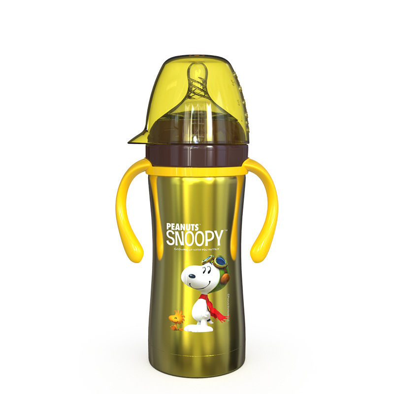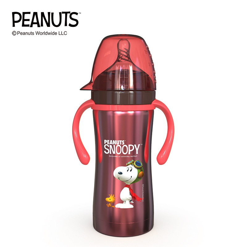 Snoopy SNOOPY thermal insulation baby bottle wide mouth stainless steel baby bottle anti-fall anti-flatulence with handle