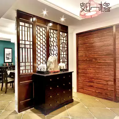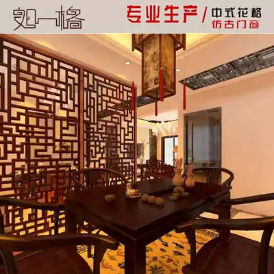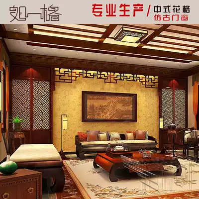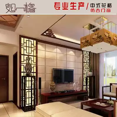 Dongyang wood carving Chinese antique doors and windows decoration living room TV background wall partition screen Solid Wood Hollow flower grid