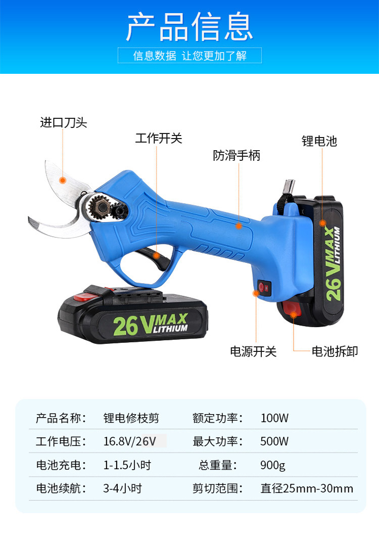 Electric Fruit Tree Scissors Repair Branch Cut of Apple Tree Branch Cut Garden Garden High Branches of Lithium-cut Lithium Electric Large Force Cut