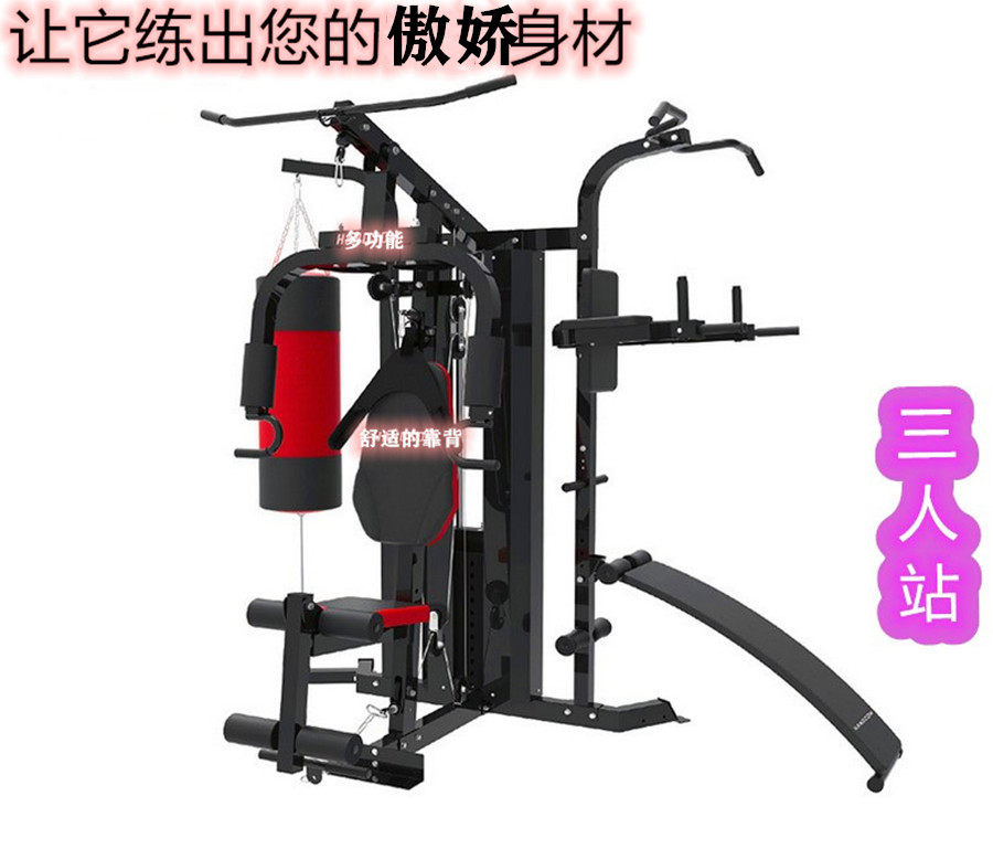 Three-person station comprehensive trainer large equipment strength training muscle suit multi-functional indoor fitness equipment
