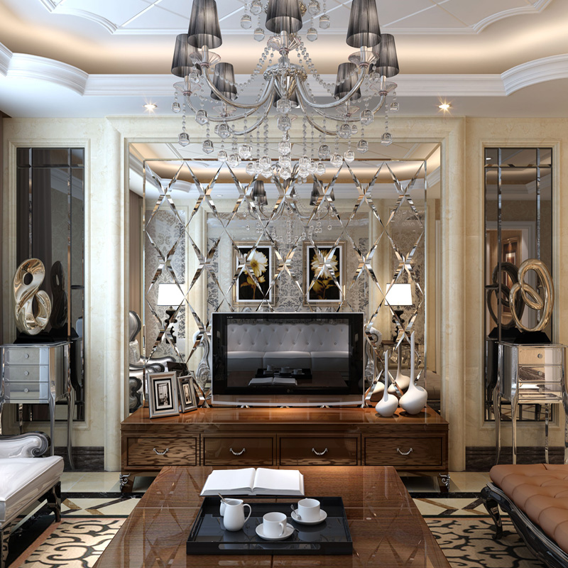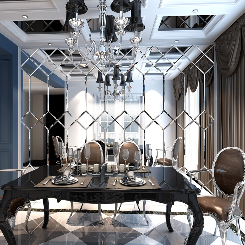 European-style art glass dining room TV sofa mirror square rhombus black gray tea mirror silver car side background wall