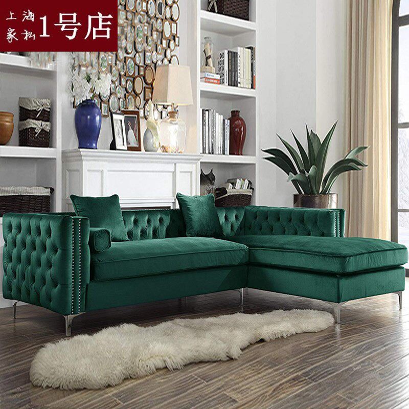 Nordic light luxury emerald green velvet fabric sofa combination American villa living room chaise corner ins style sofa - Taobao