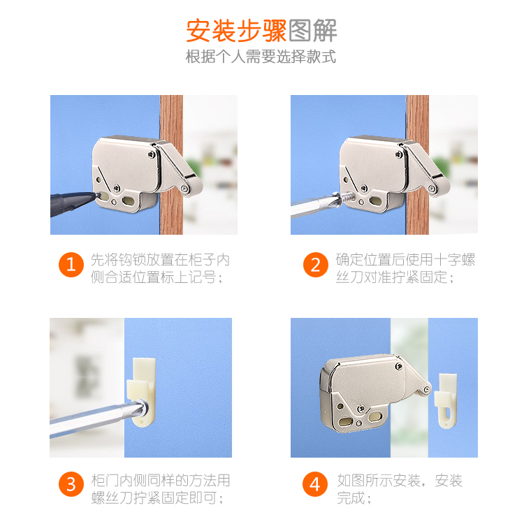 Cabinet Door Rebound Lock Snap Elephant Nose Hook Lock Free Handle Switch Lock Self-Slinglock Large Hook Self Suction Rebound