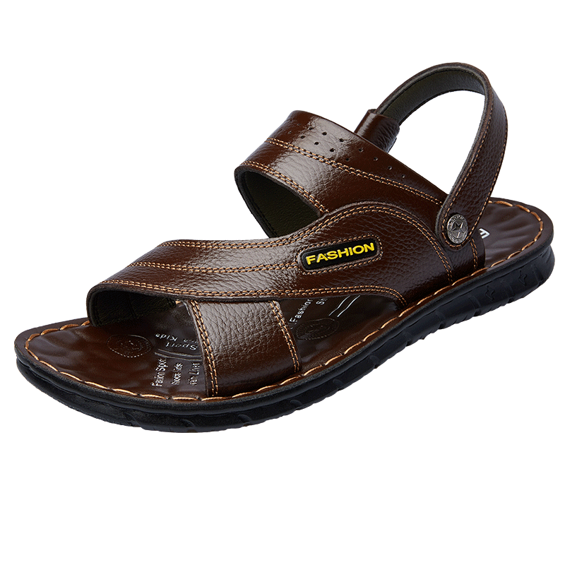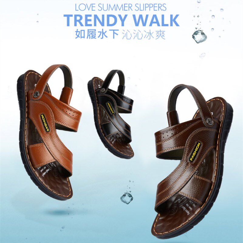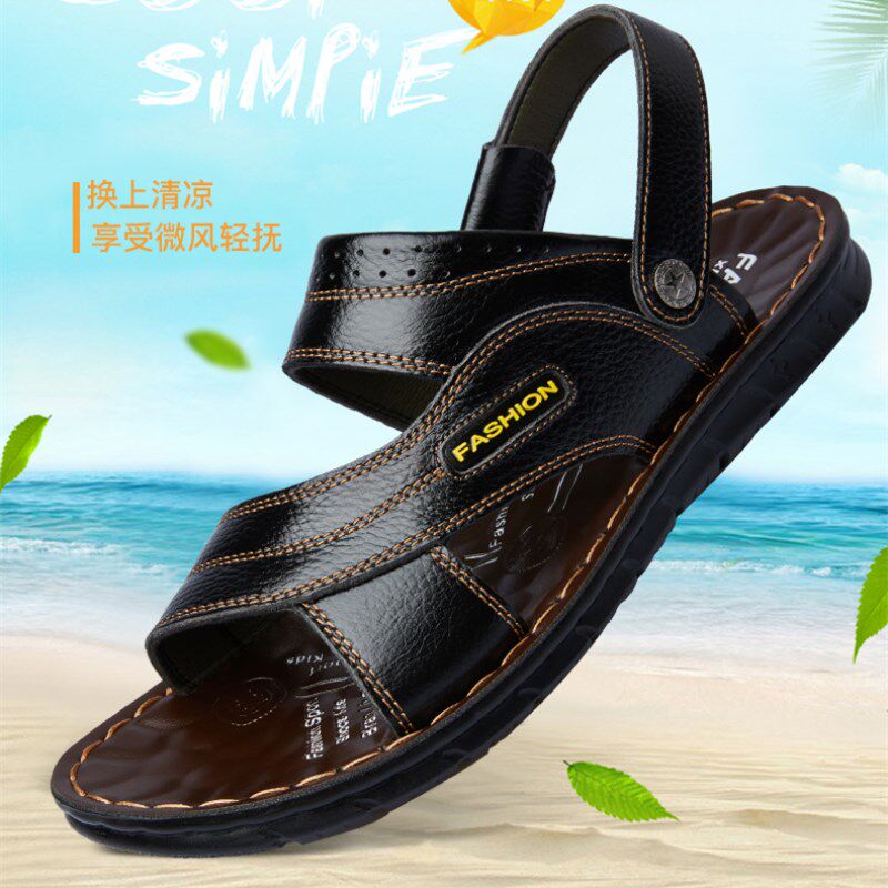 Slippers Men's Summer 2019 New Beach Shoes Non-slip Mid and Old Age Dual-use Soft Bottom Large Size Casual Genuine Leather Men Sandals