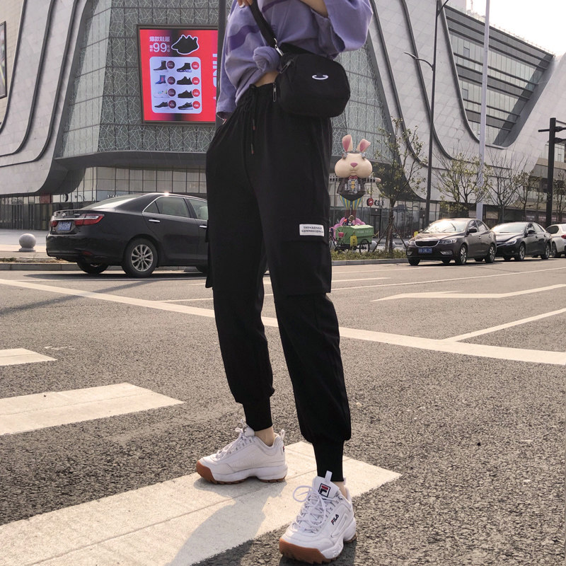 Beamed overalls women's loose bf black slim French style handsome national tide harem casual ins tide sports pants