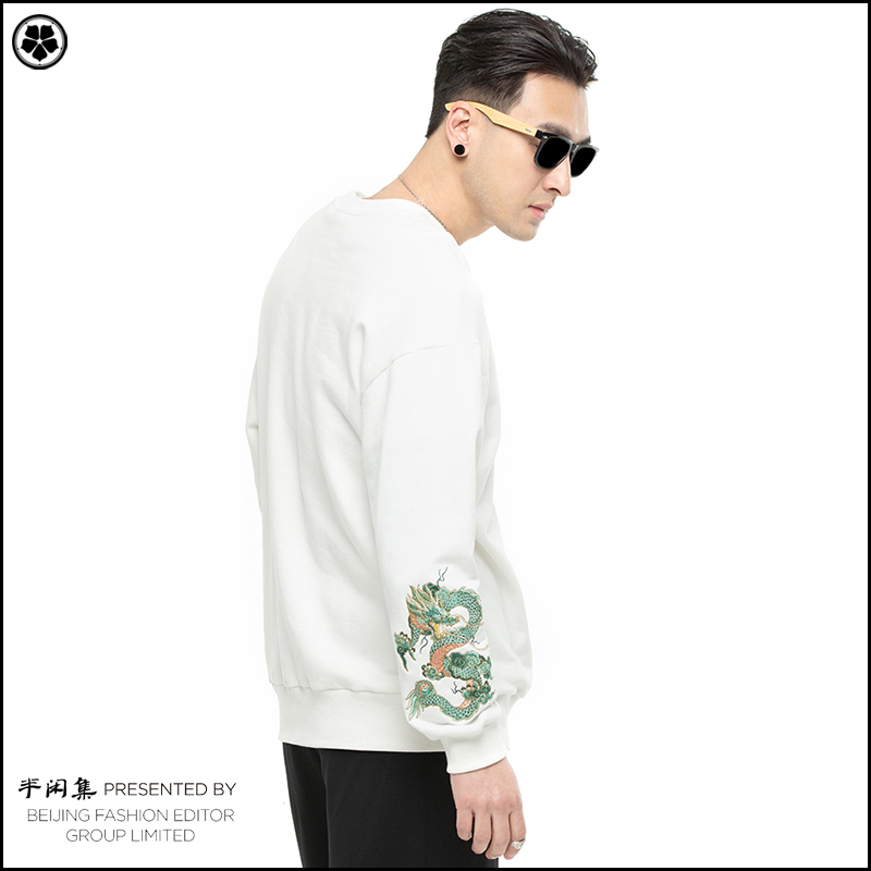 Semi-casual Jilong embroidery sweater hip-hop fashion trend round neck casual autumn new jacket Chinese style men's clothing