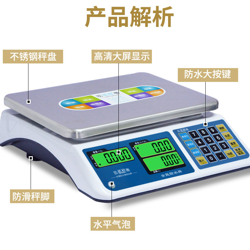 Kaiheng Waterproof Electronic Scale Aquatic Seafood 30kg Pricing Scale Selling Fish Vegetable Supermarket Fruit Said Commercial Hong Kong Pounds