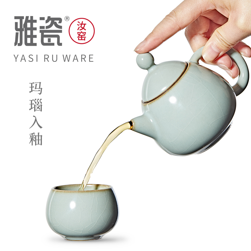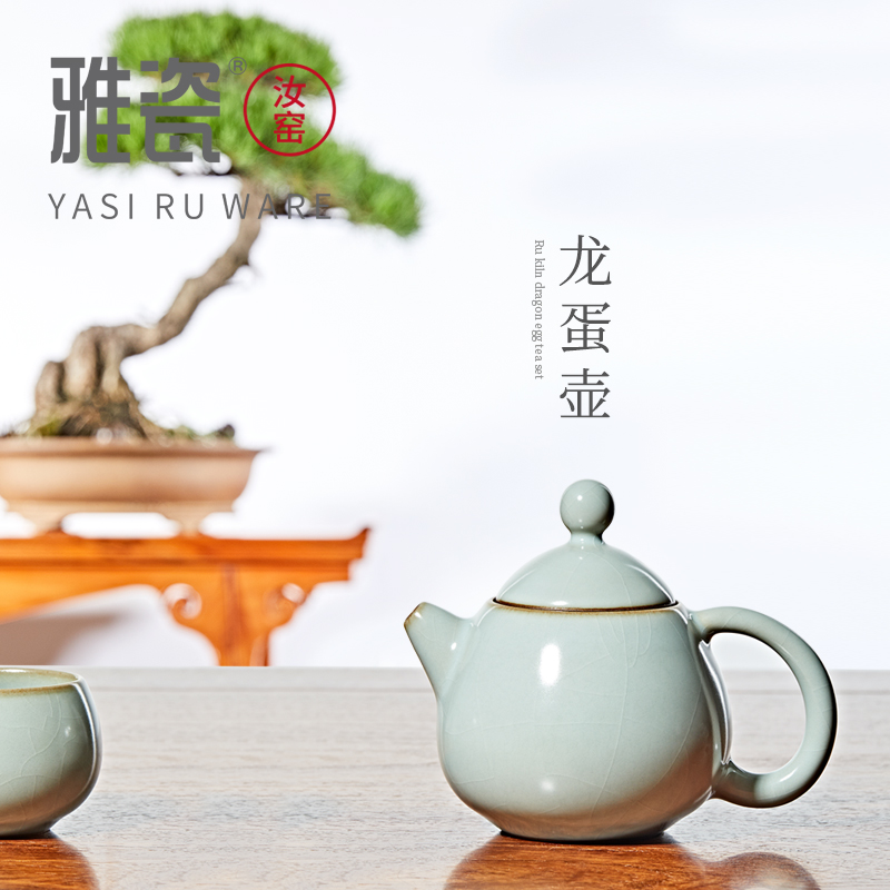 Elegant Porcelain Ru Kiln Dragon Egg Pot Ceramic Kung Fu Teapot Open Sheet Small Porcelain Jug Ice Cracked Glaze Teapot Domestic Bubble Teapot Single Pot