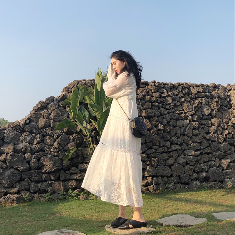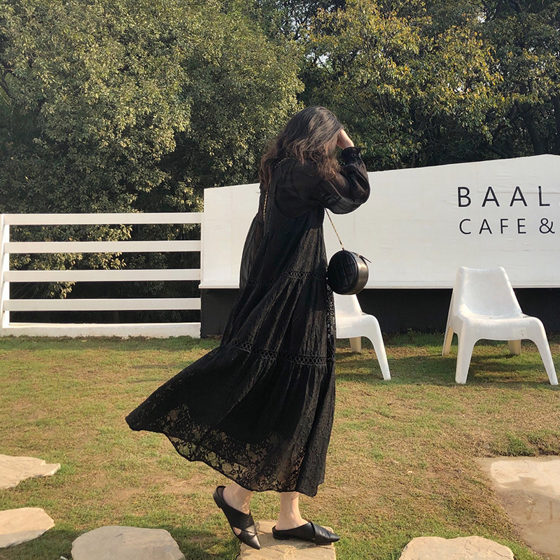 Via Vela2021 Suspender lace dress Very fairy French niche temperament Long French skirt