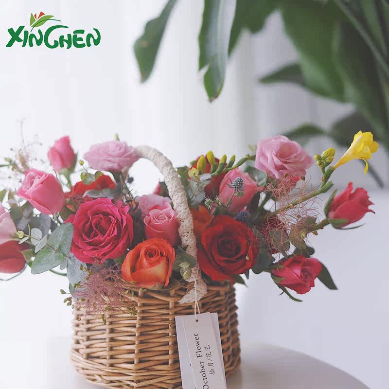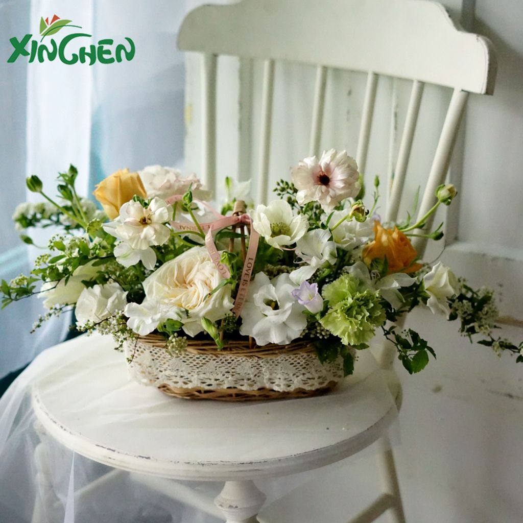 Hinchen Second-generation Cotton Side Handmade Flower Basket Flowers Packaging Material Original Field Wind Rattan choreographing lace hand basket