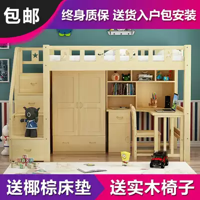 Solid wood elevated bed, bed, table, children's bed, multi-function desk, wardrobe combination bed, adult space-saving high and low bed