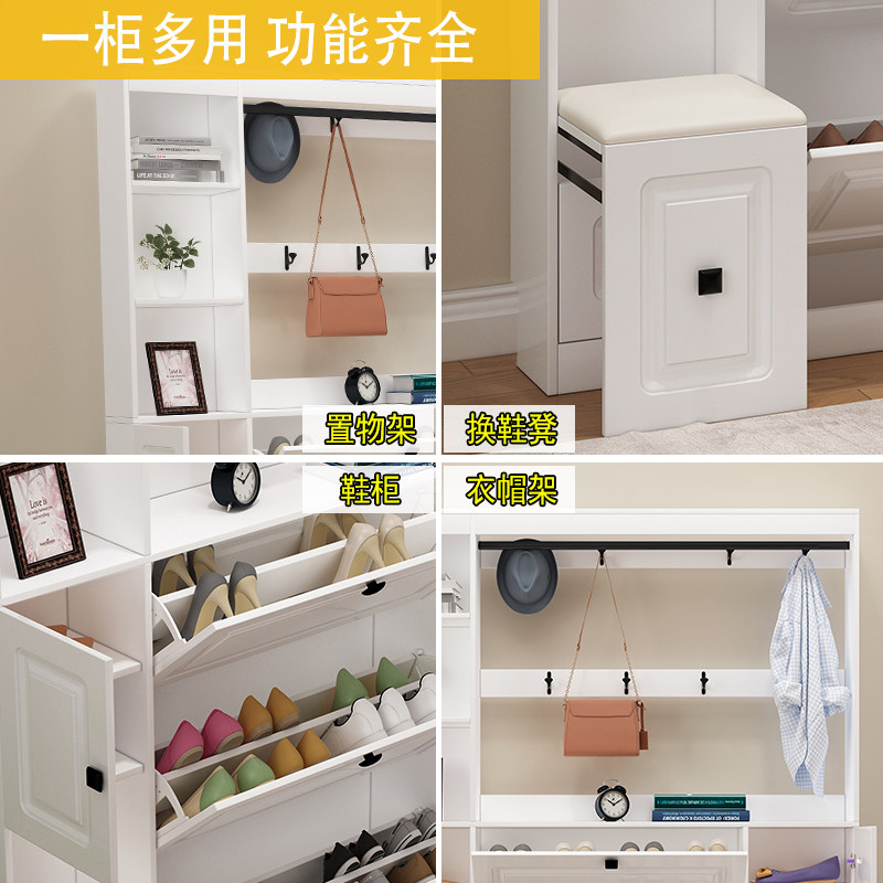Shoe cabinet home door multi-functional storage cabinet ultra-thin tipping bucket hanger one home large-capacity coat and hat hall cabinet