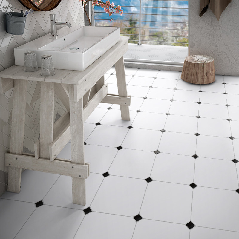 Nordic in Wind Net Red Tile Toilet Toilet Black and White tile tile tile anti-slip octagon tile