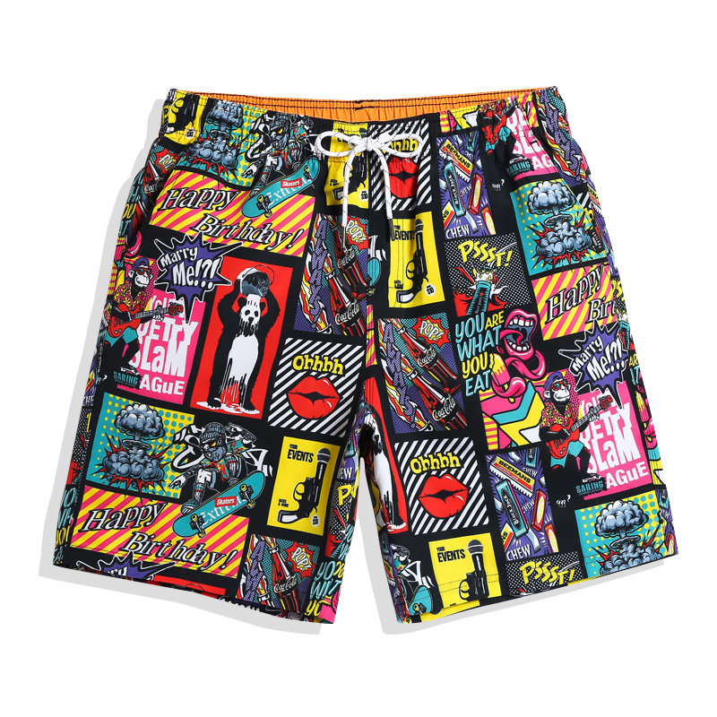 Men Beach Pants Downpable Spa Swimming Pants Speed Dry Easy Seaside Holiday Graffiti Four-corner Shorts Swim Suit
