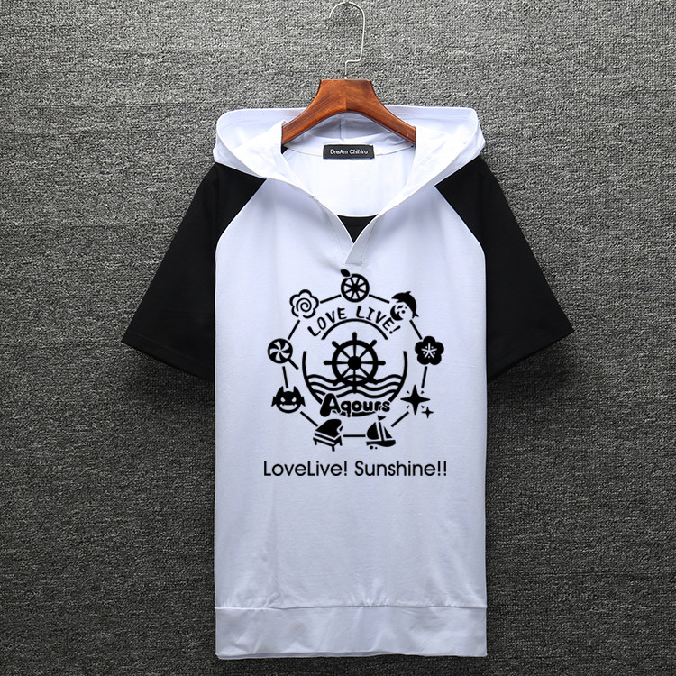 love live AQours anime peripheral short-sleeved sweater summer two-dimensional sweater men's and women's hooded TT shirt