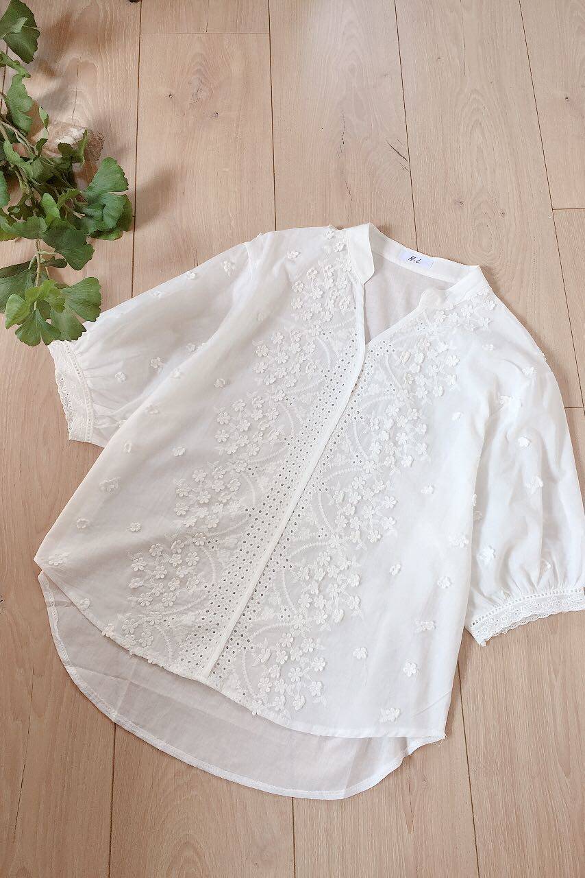Pure cotton embroidery white shirt woman 2022 spring and summer new short sleeve V collar fresh shirt art embroidered 100 hitch blouse