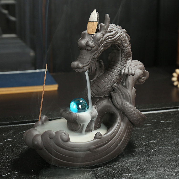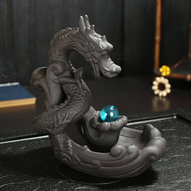 Upscale Purple Sand Back-back Porcelain Handicraft Swing Accessories Tea Channel Return Incense Stove Big home Incense Burner Tao Xiang Dragon Drama