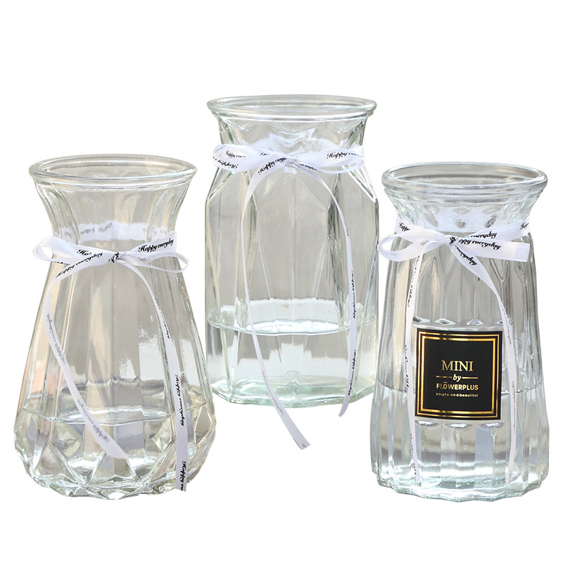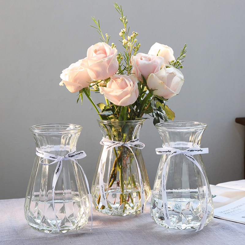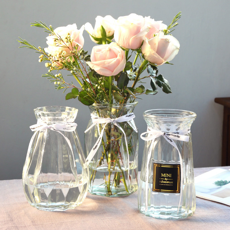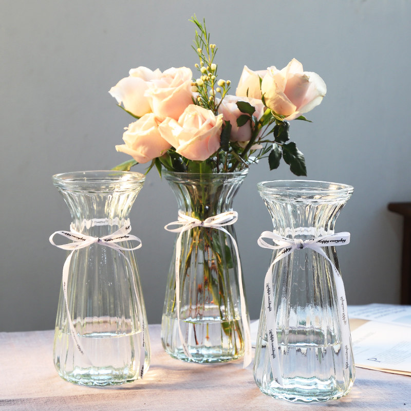 (Three-piece set)Glass bottle transparent hydroponic plants Guanyin Bamboo lily Rose dry vase Living room flower arrangement ornaments