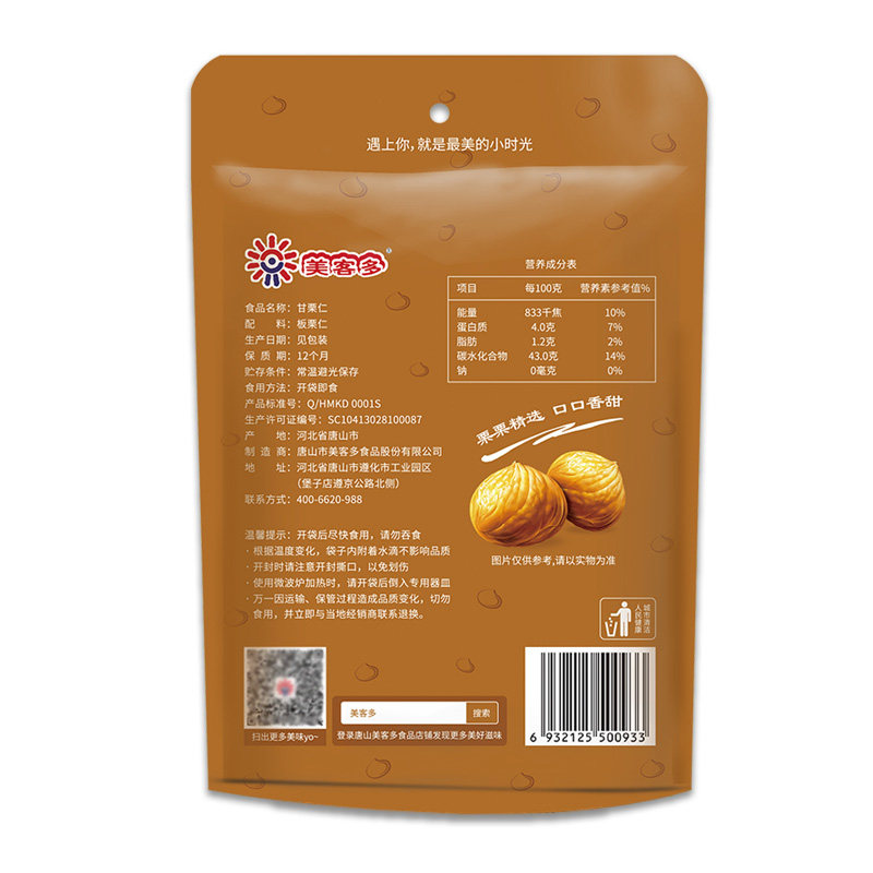 Meika Doo Chestnut 100g*5 bags Yanshan Chestnut cooked shell - free Chestnut Hebei Tangshan specialty products
