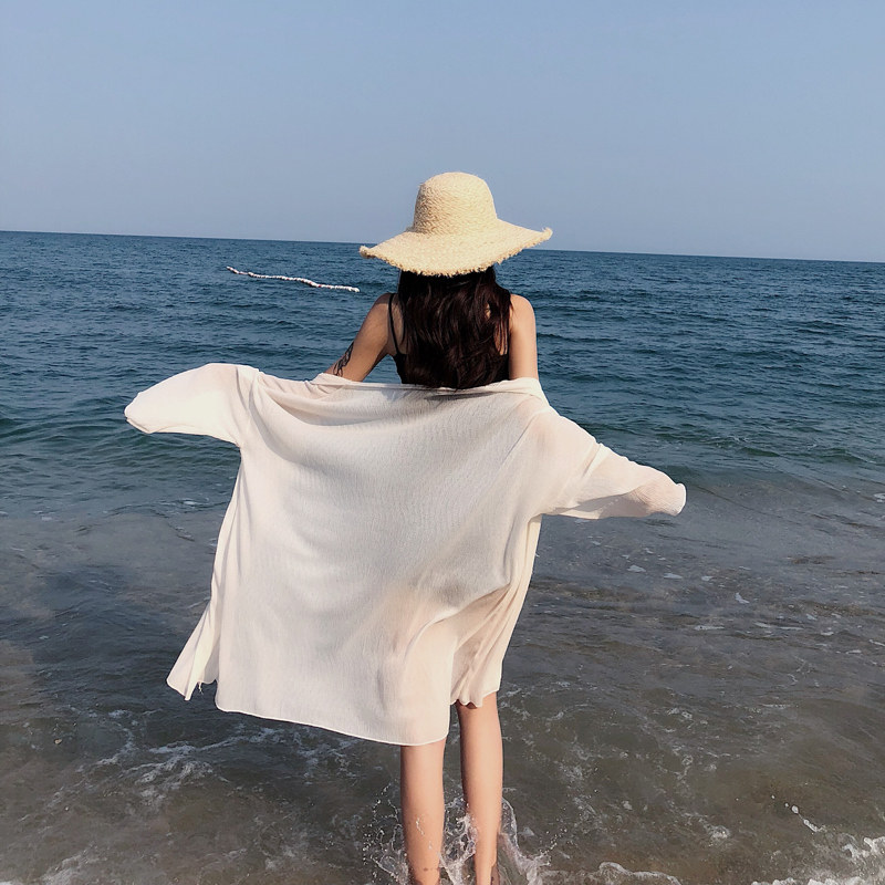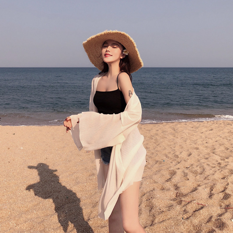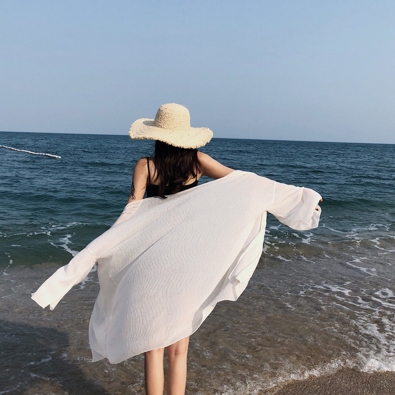 Seaside Holiday Beach Swimsuit Hooded Sweatshirt With bikini Outer lapped cardiovert long version of thin sunscreen jacket