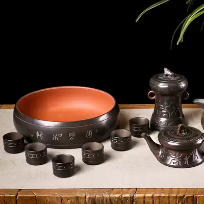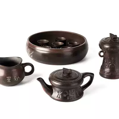 Guangxi gift nationalities Qinzhou Nixing pottery small Zhuang soul 10 sets of pure hand-made tea set Huashan rock painting process