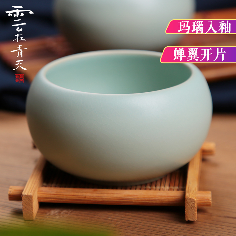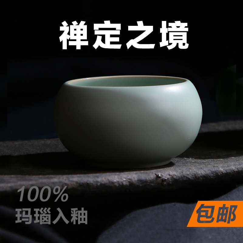 Four Divine Ru Cellar Tea Cup Master's Cup Large Number Single Cup Zen tea drinking cup Ru porcelain Bowl Cup Kongfu Tea With Ceramics
