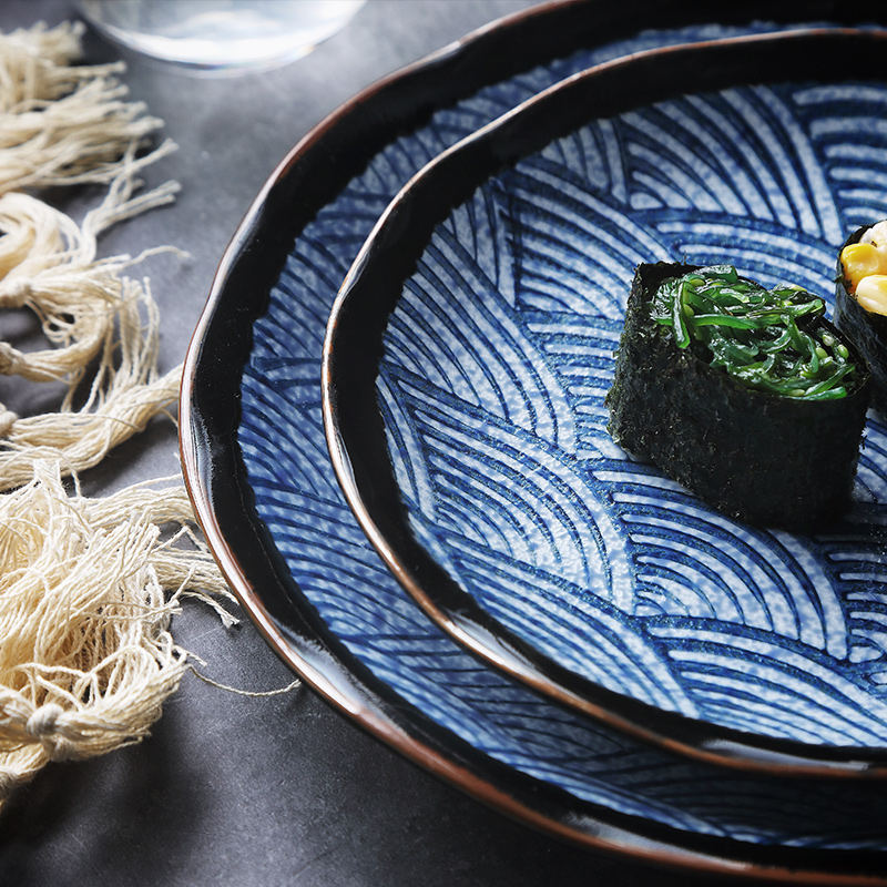 Multi-person food exported to Japan Haibo glaze color dishes Japanese fish plate and wind long square plate ceramic tableware set set