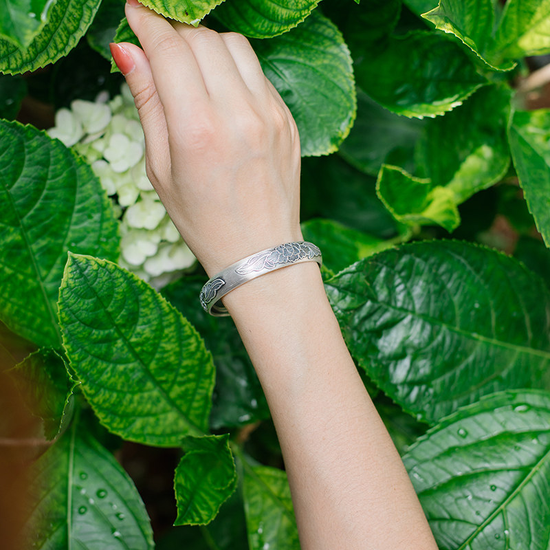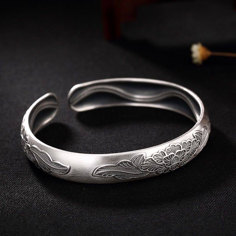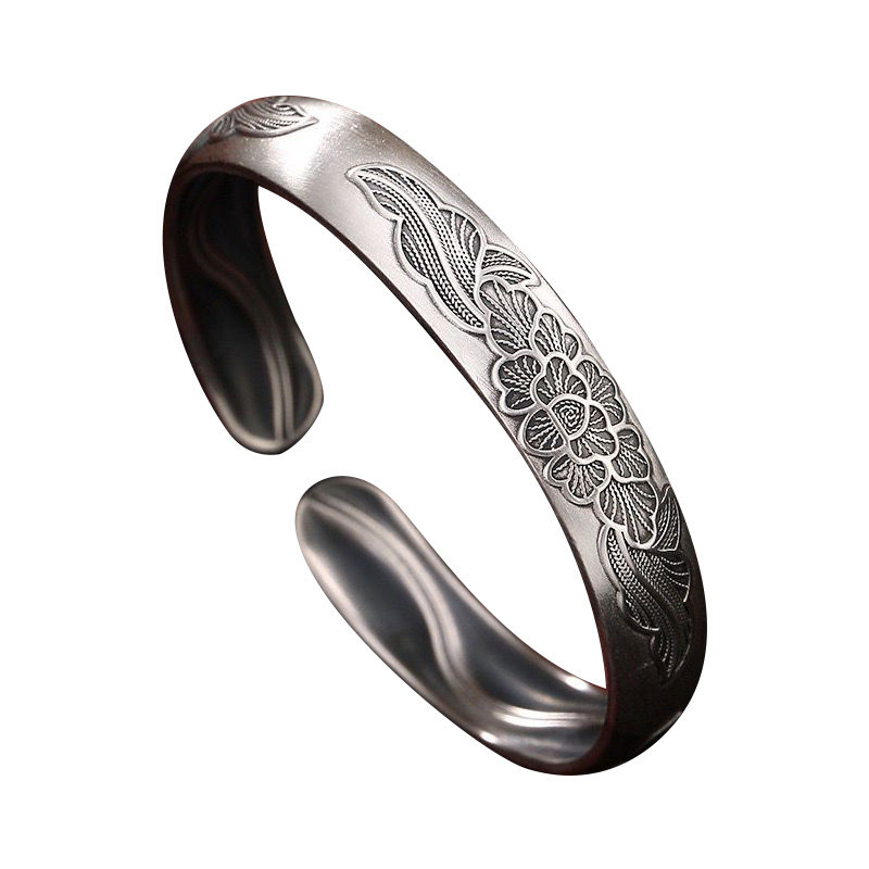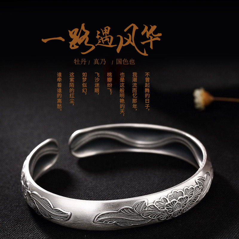 Xi Vegan Handmade Bracelet 999 Pure Silver Bracelet Female Happiness Peony Sculpture Flower Ancient Method Pass on the opening lady bracelet